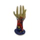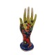 Ceramiczna rączka na pierścionki wykonany w stylu Bolesławca to elegancki i praktyczny element dekoracyjny. Ma wysokość 19 cm i jest ozdobiony  ręcznie malowanymi wzorami roślinnymi kwiaty czy trawka w odcieniach niebieskiego, zielonego i czerwonego.