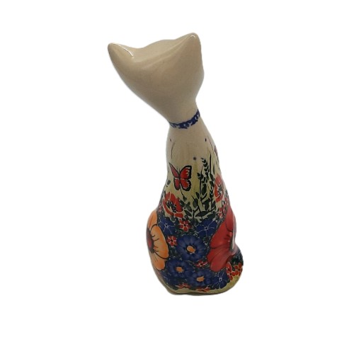 Każdy egzemplarz jest unikalny – zdobiony ręcznie, z dbałością o każdy szczegół. Figurka przedstawia smukłego kota ozdobionego barwnymi motywami kwiatowymi, charakterystycznymi dla bolesławieckiej ceramiki.