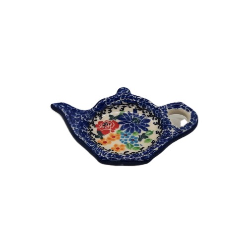 Podstawka w kształcie dzbanka do odłożenia torebki z herbaty z ceramiki Bolesławiec to nie tylko praktyczny element, ale także piękny detal, który urozmaici i uzupełni każdy zestaw do parzenia herbaty. Dzięki niej proces parzenia herbaty stanie się jeszcze bardziej przyjemny i elegancki.