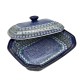 Brytfanna z pokrywą z ceramiki Bolesławiec z motywem kwiatuszków to eleganckie i praktyczne naczynie, idealne do pieczenia i serwowania różnorodnych potraw. Ręcznie zdobiona w motyw geometrycznyw odcieniach niebieskiego nadaje brytfannie unikalny, rustykalny charakter. Wykonana z trwałej kamionki, brytfanna jest odporna na wysokie temperatury, co czyni ją idealną do używania w piekarniku. Pokrywa pozwala na równomierne pieczenie i zachowanie wilgotności potraw. Naczynie jest nie tylko funkcjonalne, ale również pięknie prezentuje się na stole.
