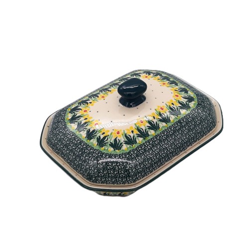 Brytfanna z pokrywką do pieczenia z ceramiki bolesławieckiej z motywem kwiatowym to piękne i praktyczne naczynie do pieczenia, duszenia i zapiekania potraw. Jest ręcznie malowana tradycyjnymi wzorami bolesławieckimi i wykonana z wysokiej jakości gliny. Brytfanna jest bezpieczna w piekarniku, kuchence mikrofalowej i zmywarce.
