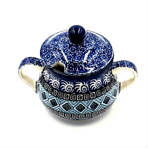 Cukiernica z ceramiki bolesławieckiej to piękne i praktyczne naczynie, które idealnie nadaje się do przechowywania cukru. Jest ręcznie malowana w motyw geometryczny. Cukiernica jest wykonana z wysokiej jakości ceramiki i jest bezpieczna w zmywarce i kuchence mikrofalowej.