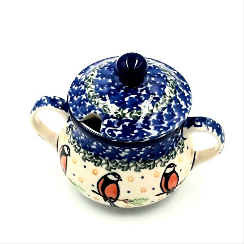 Cukiernica z ceramiki bolesławieckiej to piękne i praktyczne naczynie, które idealnie nadaje się do przechowywania cukru. Jest ręcznie malowana w motyw z gilami. Cukiernica jest wykonana z wysokiej jakości ceramiki i jest bezpieczna w zmywarce i kuchence mikrofalowej.