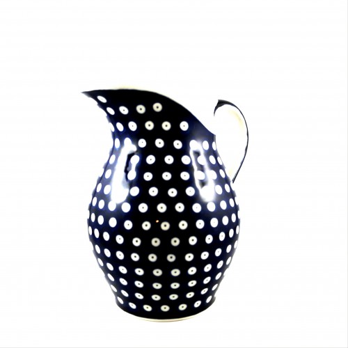 Dzbanek o pojemności 1,7 litra z motywem białych groszków na kobaltowym tle wykonany z ceramiki Bolesławiec to klasyczny przykład polskiej sztuki rzemieślniczej. Ceramika z Bolesławca, znana na całym świecie z wyjątkowego rękodzieła, charakteryzuje się wysoką jakością i tradycyjnym sposobem wytwarzania. Dzbanek ozdobiony jest subtelnym wzorem, które dodają mu uroku i naturalnego charakteru. Ręcznie malowane detale w typowych dla Bolesławca odcieniach kobaltu, zieleni harmonizują z tłem ceramiki. Naczynie jest nie tylko piękną ozdobą stołu, ale również praktycznym elementem kuchennym, idealnym do serwowania napojów.