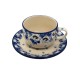 Filiżanka do kawy/herbaty z ceramiki bolesławieckiej z dekoracją kwiatową to piękny i wyjątkowy przedmiot, idealny do picia kawy, herbaty lub innych napojów. Jest ręcznie malowana  wzorem kwiatowym, wykonana z wysokiej jakości ceramiki i jest bezpieczna w zmywarce i kuchence mikrofalowej.
