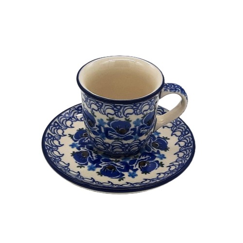 Piękna filiżanka do espresso z ceramiki bolesławieckiej, ręcznie malowana motywem kwiatowym. Idealna do porannej kawy i popołudniowego espresso.