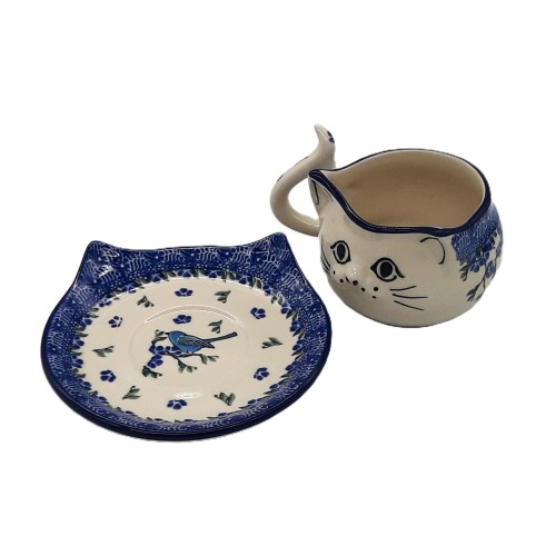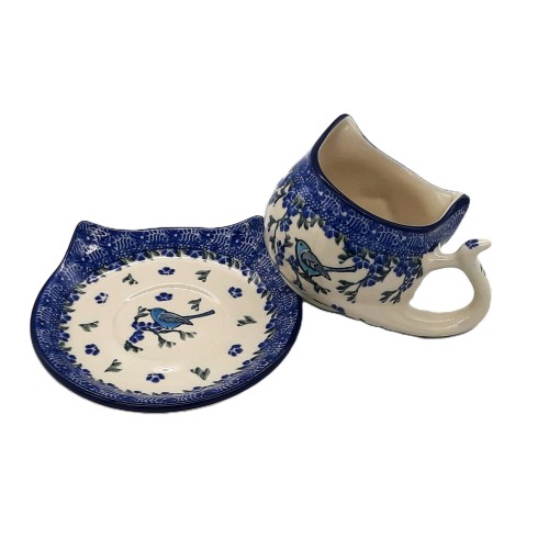 🐾 Filiżanka z talerzykiem – kotek 0,25 l – Ceramika Bolesławiec