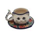 Oryginalna filiżanka w kształcie główki kotka z talerzykiem, wykonana ręcznie przez Spółdzielnię Rękodzieła Artystycznego w Bolesławcu.