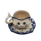 Oryginalna filiżanka w kształcie główki kotka z talerzykiem, wykonana ręcznie przez Spółdzielnię Rękodzieła Artystycznego w Bolesławcu.