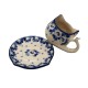 W zestawie: filiżanka  ( h : 7,8 średnica 8,5/7,5 szerokość z uchem 12,5 cm ) + talerzyk ( średnica 14,3 cm )
