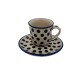 Piękna filiżanka do espresso z ceramiki bolesławieckiej, ręcznie malowana z motywem czarnych groszków. Idealna do porannej kawy i popołudniowego espresso.