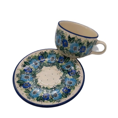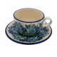 Filiżanka do kawy/herbaty z ceramiki bolesławieckiej z dekoracją kwiatową to piękny i wyjątkowy przedmiot, idealny do picia kawy, herbaty lub innych napojów.  Filiżanka jest wykonana z wysokiej jakości ceramiki i jest bezpieczna w zmywarce i kuchence mikrofalowej.