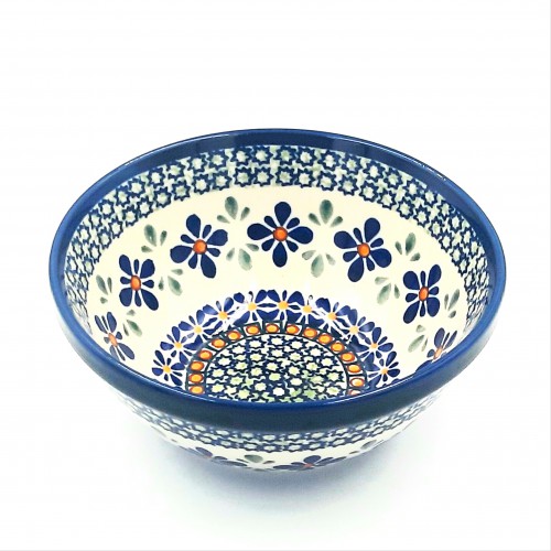 Przedstawiona miska to piękny przykład tradycyjnego rzemiosła ceramicznego z Bolesławca. Wykonana z wysokiej jakości kamionki, została ozdobiona charakterystycznym wzorem DU60. Ten wyjątkowy wzór wyróżnia się bogactwem kolorów i detali, a motywem przewodnim są stylizowane kwiaty.