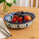 Ten półmisek ceramiczny z Bolesławca ozdobiony jest uroczą dekoracją w odcieniach kobaltu i błękitu.