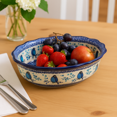 Półmisek jest praktyczny i elegancki – doskonały do serwowania sałatek, dań głównych, owoców czy wypieków. To także świetny pomysł na prezent dla miłośników polskiej ceramiki i rękodzieła.
