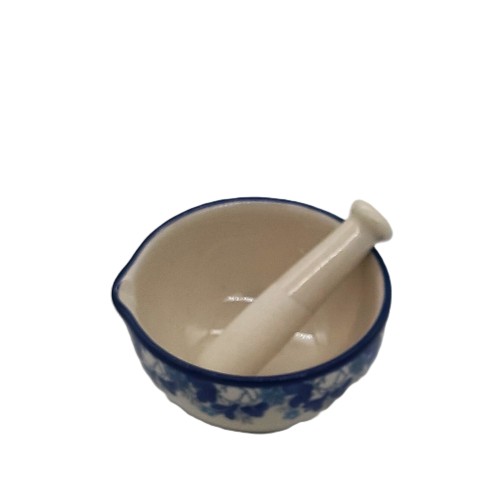 Moździerz z tłuczkiem z ceramiki Bolesławiec to eleganckie i funkcjonalne naczynie kuchenne, które doskonale nadaje się do rozdrabniania przypraw i ziół oraz leków. Oto szczegółowy opis: