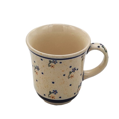 Ten kubek to piękny przykład ceramiki bolesławieckiej, która słynie z charakterystycznych wzorów. Kubek jest wykonany z wysokiej jakości ceramiki i jest bezpieczny w zmywarce i kuchence mikrofalowej.