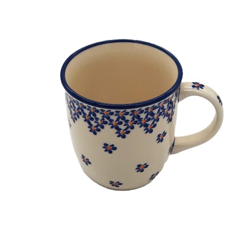 Ten kubek to piękny przykład ceramiki bolesławieckiej, która słynie z charakterystycznych wzorów. Kubek jest wykonany z wysokiej jakości ceramiki i jest bezpieczny w zmywarce i kuchence mikrofalowej.