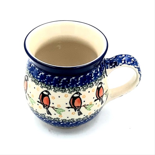 Ten kubek to piękny przykład ceramiki bolesławieckiej, która słynie z charakterystycznych wzorów ręcznie malowanych . Kubek jest wykonany z wysokiej jakości ceramiki i jest bezpieczny w zmywarce i kuchence mikrofalowej.