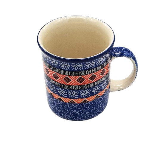Ten kubek to piękny przykład ceramiki bolesławieckiej, która słynie z charakterystycznych wzorów ręcznie malowanych . Kubek jest wykonany z wysokiej jakości ceramiki i jest bezpieczny w zmywarce i kuchence mikrofalowej.