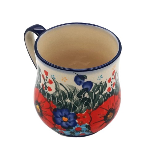 Kubek ceramiczny z motywem kwiatowym o pojemności 0,35 litra to wyjątkowy produkt w stylu ceramiki Bolesławiec, znanej na całym świecie z precyzji wykonania i unikalnych wzorów. Charakterystyczne cechy tego kubka to: