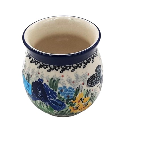 - Zdobienie: kubek zdobi motyw roślinny z elementem motylka w odcieniach niebieskiego, zielonego oraz żółci , które nadają mu radosny i oryginalny wygląd. Motyw ten z pewnością przypadnie do gustu zarówno dorosłym, jak i dzieciom.