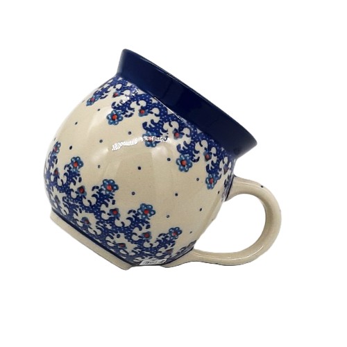 Wykonany z kamionki, kubek ten ma charakterystyczny, ręcznie malowany wzór, który dodaje mu wyjątkowego uroku i autentyczności. Motyw z kwiatuszkami malowany jest z dbałością o szczegóły, co nadaje kubkowi indywidualny charakter i sprawia, że każdy egzemplarz jest niepowtarzalny.