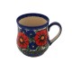- Dekoracja: Kubek zdobiony jest motywem kwiatowym, ręcznie malowanym w żywych, nasyconych kolorach. Dominują odcienie niebieskiego, zieleni,czerwieni co nadaje kubkowi świeży i wiosenny charakter.