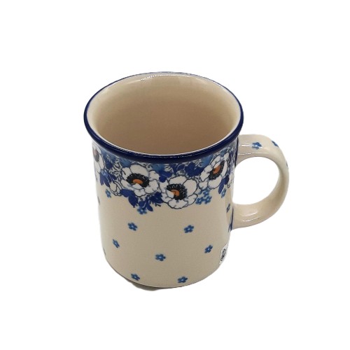 Duży kubek V: 0,4 l z kamionki z motywem  kwiatowym z ceramiki Bolesławiec to prawdziwy klejnot dla miłośników ceramiki i ręcznie wykonanych produktów ceramicznych.