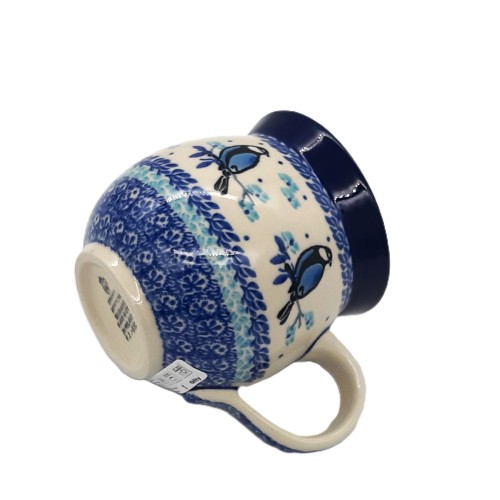 Kubek czeski o pojemności 0,35 l z motywem niebieskich ptaków, wykonany z ceramiki bolesławieckiej, to elegancki i funkcjonalny przedmiot codziennego użytku. Charakteryzuje się następującymi cechami: