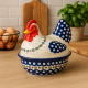 Pojemnik w kształcie kury do pieczenia i przechowywania żywności, wykonany z ceramiki bolesławieckiej, to wyjątkowy i dekoracyjny element, który łączy funkcjonalność z tradycyjnym wzornictwem.
