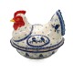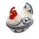 Ten ceramiczny pojemnik ma wymiary 24 cm na 20 cm i wysokość 22 cm. Jest to produkt o charakterystycznym dla ceramiki bolesławieckiej stylu, z ręcznie malowanymi wzorami w odcieniach niebieskiego . Kura, będąca głównym elementem tego pojemnika, ma zarysowane detale, takie jak grzebień i dziób  co dodaje jej uroku.