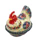 Pojemnik w kształcie kury do pieczenia i przechowywania żywności, wykonany z ceramiki bolesławieckiej, to wyjątkowy i dekoracyjny element, który łączy funkcjonalność z tradycyjnym wzornictwem.