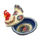 • Kształt: naczynie przedstawia stylizowaną kurę z charakterystyczną głową i ogonem. Pokrywa naczynia imituje skrzydła kury, a jej wnętrze jest wklęsłe, tworząc miskę.