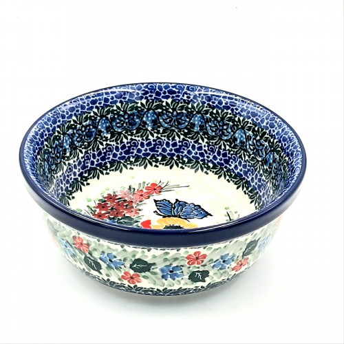 Miska na zupę z motywem motyla z ceramiki bolesławieckiej to piękne i praktyczne naczynie do serwowania zup, gulaszu i innych potraw. Jest ręcznie malowana  i wykonana z kamionki. Miska jest bezpieczna w piekarniku, kuchence mikrofalowej i zmywarce.