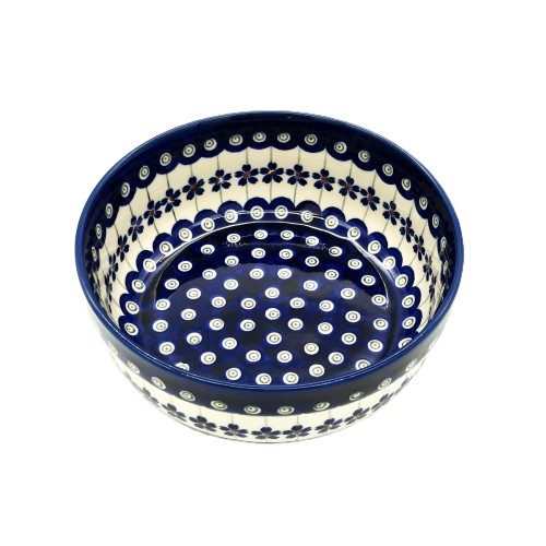 Miska o pojemności 1,0 l z ceramiki Bolesławiec w dekoracji 166A to eleganckie i funkcjonalne naczynie, idealne do codziennego użytku. Ręcznie zdobiona charakterystycznym dla Bolesławca wzorem, dekoracja składa się z pawich oczek oraz kwiatuszków. Miska jest idealna do serwowania sałatek, zup czy przekąsek, a dzięki solidnemu wykonaniu z wysokiej jakości kamionki jest odporna na wysokie temperatury i uszkodzenia.