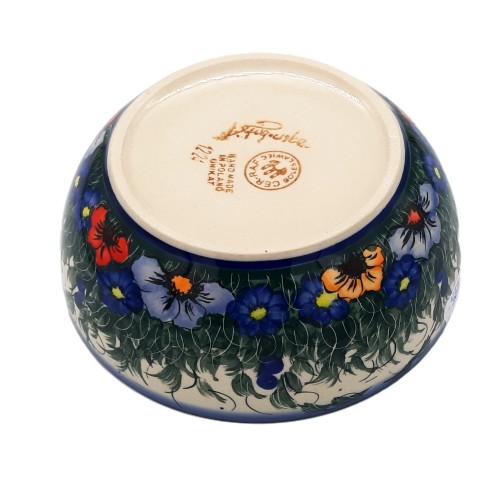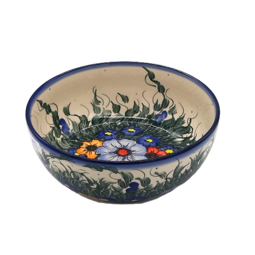 Piękna i praktyczna miska o pojemności 0,8 litra z motywem kwiatowym oraz trawką z ceramiki bolesławieckiej.