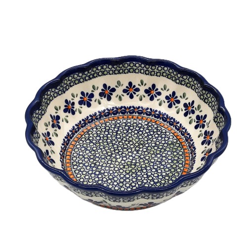 Miska z ceramiki Bolesławiec o pojemności 1,5 l w dekoracji DU60 to naczynie, które łączy w sobie tradycję i funkcjonalność. Wykonana ręcznie z trwałej ceramiki, ozdobiona jest wzorem w odcieniach niebieskiego i zielonego. Dekoracja DU60 to unikatowy wzór, który dodaje elegancji każdemu stołowi. Miska o pojemności 1,5 l jest idealna do serwowania sałatek, zup lub innych potraw, a jednocześnie stanowi piękną ozdobę kuchni.