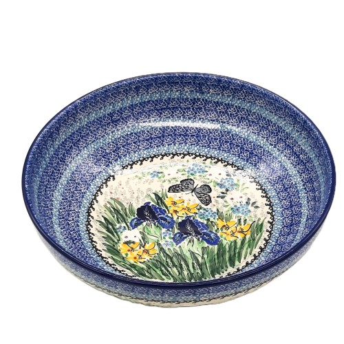Miska o pojemności 1,7 litra wykonana z ceramiki bolesławieckiej to idealne połączenie tradycji i uroku. Utrzymana w unikatowym stylu, charakteryzuje się wysoką jakością wykonania i pięknymi zdobieniami przedstawiającymi motyw roślinny z elementem motyla . Wzory te w odcieniach niebieskiego, zieleni i żółci ręcznie malowane przy użyciu charakterystycznej techniki stempelkowej oraz pędzla są doskonale wkomponowane w tło.