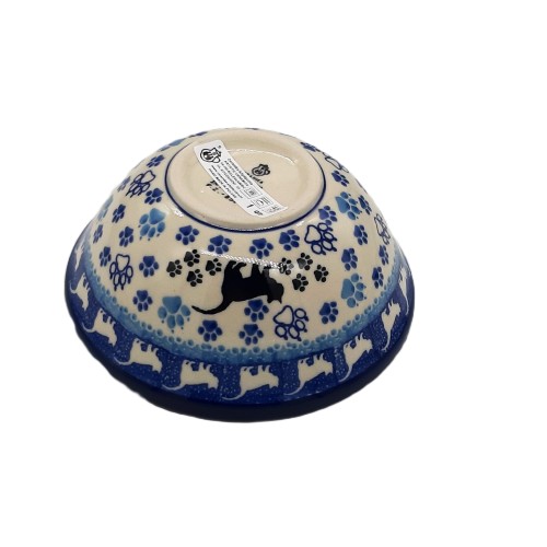 Miska z motywem kotków z ceramiki bolesławieckiej to piękne i praktyczne naczynie do serwowania zup, płatków i innych potraw. Jest ręcznie malowana  i wykonana z kamionki. Miska jest bezpieczna w piekarniku, kuchence mikrofalowej i zmywarce.