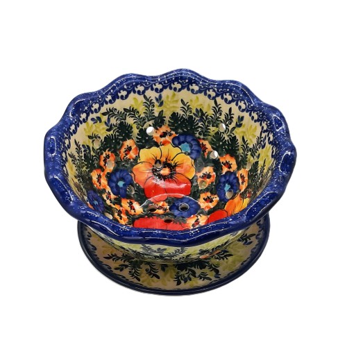 Stylowy i funkcjonalny zestaw ceramiczny od CER-RAF Bolesławiec, który łączy w sobie tradycyjne rzemiosło z praktycznym zastosowaniem w kuchni. Ręcznie zdobiony motywem kwiatowym w intensywnych kolorach sprawia, że durszlak może pełnić nie tylko funkcję użytkową, ale również dekoracyjną.