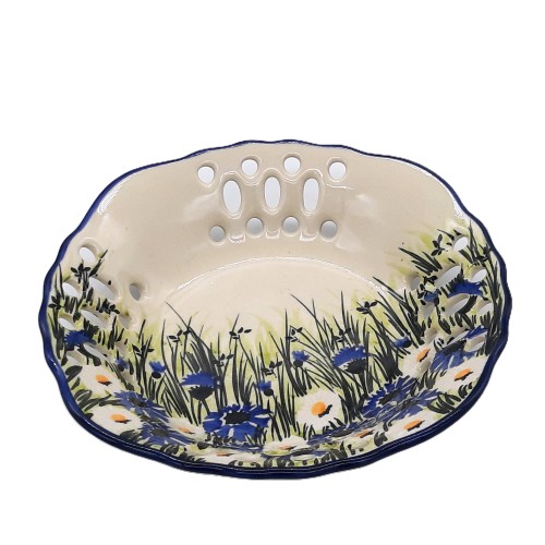 Owocarka ażurowa 22,5 cm unikat, stokrotki, bławatki