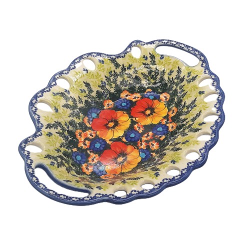 Duża owocarka ażurowa z ceramiki bolesławieckiej to wyjątkowe naczynie, które łączy tradycyjne rzemiosło z elegancją i funkcjonalnością. Jej imponujący rozmiar oraz precyzyjnie wykonane ażurowe wykończenie czynią ją idealnym wyborem do eksponowania owoców, pieczywa .