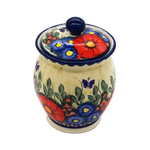 Pojemnik na produkty sypkie z ceramiki Bolesławiec o pojemności 0,7 litra to praktyczny i estetyczny element wyposażenia każdej kuchni. Wykonany ręcznie z wysokiej jakości ceramiki, charakteryzuje się trwałością oraz odpornością na uszkodzenia. Pojemnik zdobiony jest tradycyjnymi, ręcznie malowanymi wzorami charakterystycznymi dla ceramiki bolesławieckiej, co czyni go nie tylko funkcjonalnym, ale także dekoracyjnym dodatkiem. Idealny do przechowywania mąki, cukru, kawy czy innych produktów sypkich.