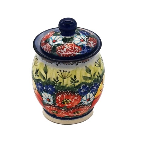 Pojemnik na produkty sypkie z ceramiki Bolesławiec o pojemności 0,18 litra to praktyczny i estetyczny element wyposażenia każdej kuchni. Wykonany ręcznie z wysokiej jakości ceramiki, charakteryzuje się trwałością oraz odpornością na uszkodzenia. Pojemnik zdobiony jest tradycyjnymi, ręcznie malowanymi wzorami charakterystycznymi dla ceramiki bolesławieckiej, co czyni go nie tylko funkcjonalnym, ale także dekoracyjnym dodatkiem. Idealny do przechowywania niewielkich ilości produktów sypkich.