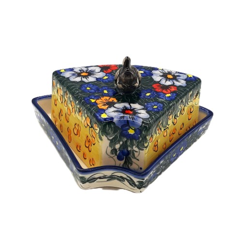 To jest ceramiczny pojemnik na ser z Bolesławca, wyprodukowany przez firmę Cer-Raf. Wymiary pojemnika to 21 x 16 x 6,5 cm, a jego wysokość wynosi 7,5 cm.