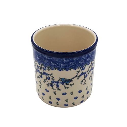 🩵 Pojemnik na łyżki z ceramiki bolesławieckiej to elegancki, ręcznie malowany wyrób od Spółdzielni Rękodzieła Artystycznego w Bolesławcu. Utrzymany w niebiesko-białej kolorystyce z motywem roślinnym z elementem ptaszka, łączy tradycję i funkcjonalność.