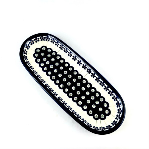 Taca na przystawki z Ceramiki Bolesławiec, zdobiona charakterystycznym wzorem 166A, to połączenie tradycyjnego rzemiosła z nowoczesnym designem. Jest to idealne naczynie do serwowania różnego rodzaju przekąsek, zarówno na co dzień, jak i podczas specjalnych okazji.