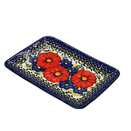 Piękna i praktyczna tacka na potrawy z motywem kwiatowym z makami z ceramiki bolesławieckiej.