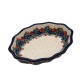 Piękna, owalna miska ceramiczna z tradycyjnej bolesławieckiej ceramiki. Ręcznie zdobiona metodą stempelkową, przedstawiającą kwiatowy wzór w odcieniach niebieskiego, czerwieni, zieleni. Jej falowany brzeg nadaje elegancji i wyjątkowego charakteru, dzięki czemu będzie ozdobą każdego stołu.